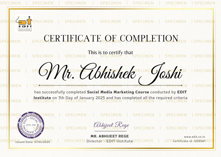 At EDIT Institute, we take pride in the success of our students, showcasing their achievements with certifications that validate their expertise in social media marketing.