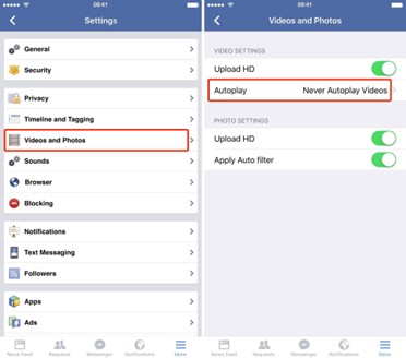Facebook provides an Autoplay video function that helps the user to control the data and energy consumption of Mobile.